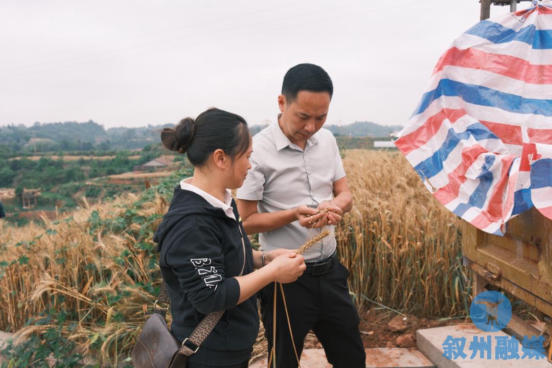 日,正在合什镇高嘴村,连缀不停的麦田正在轻风中泛起层层金色海浪,空气中洋溢着麦穗的芬芳。收割机正在田间来回穿越,丰收的排场热火朝天。该镇农业手艺人员正正在查看小麦的质量环境。