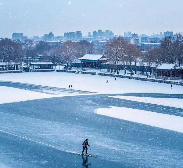大都人对这个冬天的第一印象,三九四九冰上走,正在一九的时候,这一系列现象,什刹海早就是冰场一片,冰雕节的筹备热火朝天,