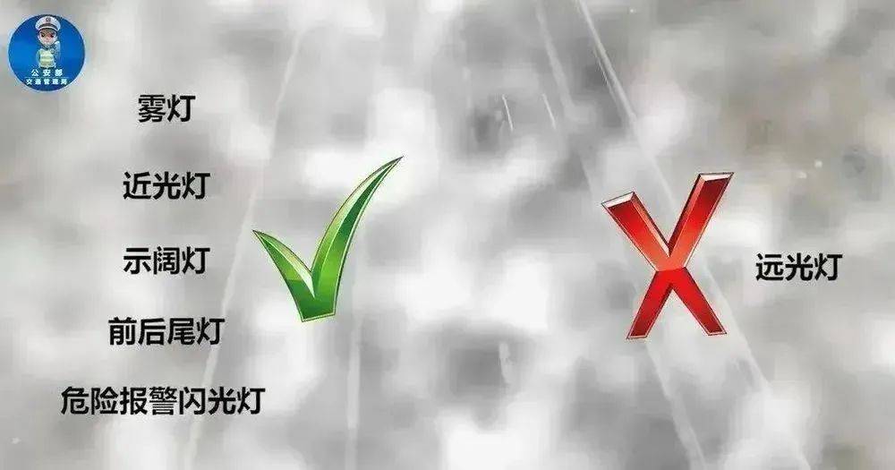 碰到雾天时应及时雾灯、近光灯、前后位灯和报警闪光灯,不要利用远光灯。由于远光灯是向上方照的,射出的光线被雾气漫反射后会正在车前构成白茫茫一片,反而容易以致驾驶人视线