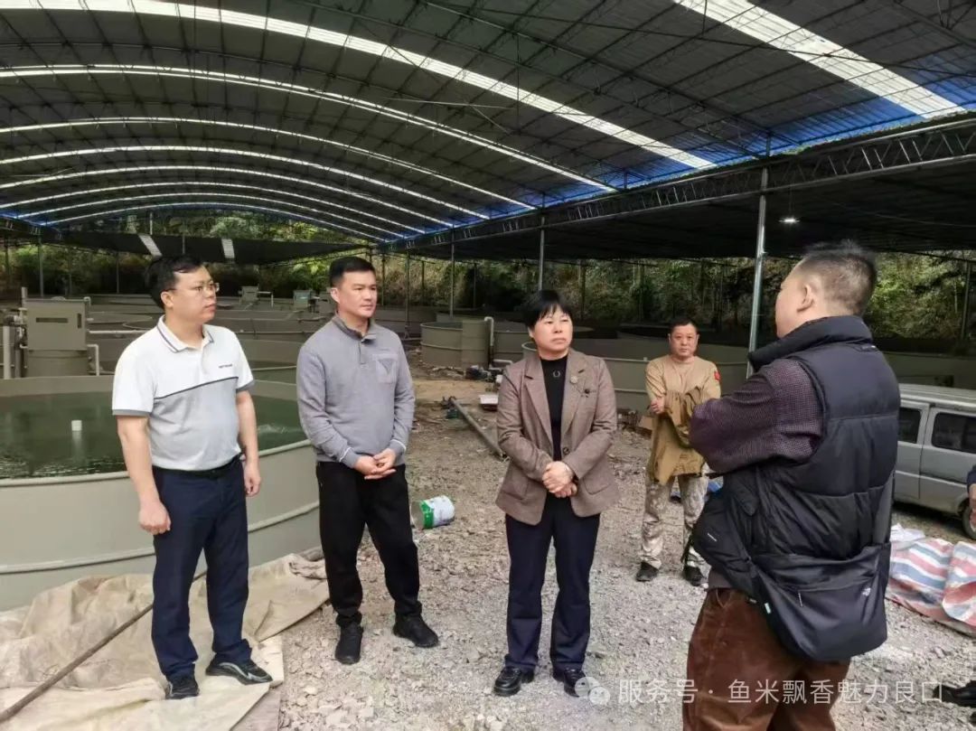 正在项目现场,调研组认实听取了项目担任人关于圆筒养鱼手艺道理、养殖规模以及当前面对坚苦等环境的细致报告请示,细心查看圆筒养鱼设备扶植情况,扣问鱼饲料投放比例、水质调控等环节手艺要点。